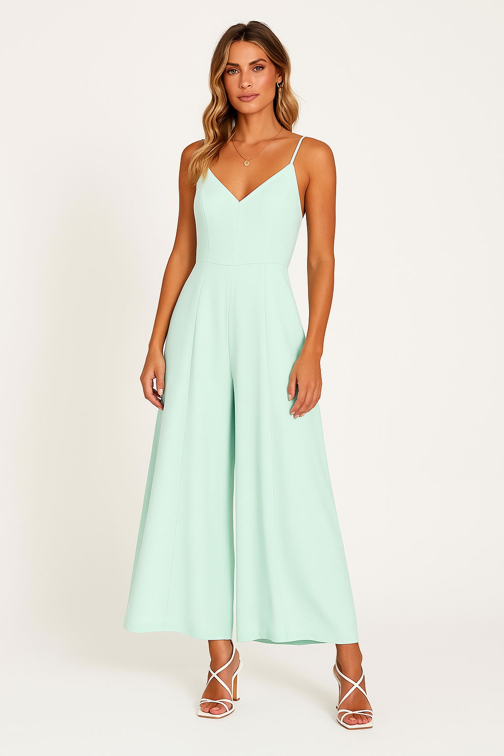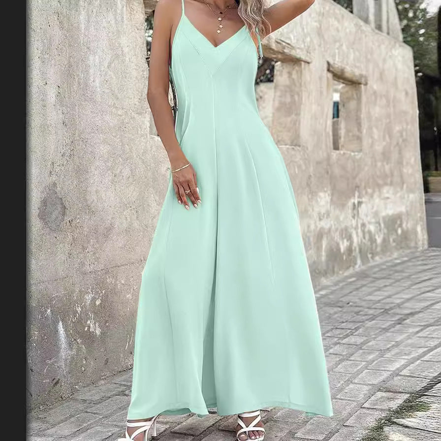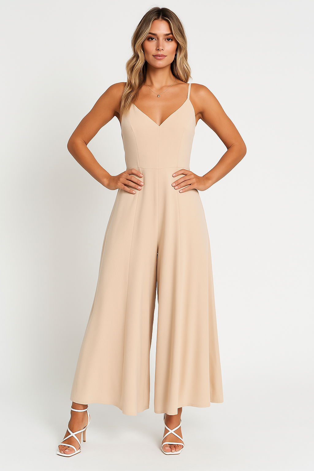 Experience effortless style and ultimate comfort with this elegant women's jumpsuit. Featuring a flattering V-neck and delicate spaghetti straps, this jumpsuit is designed with a relaxed, wide-leg silhouette that drapes beautifully. Perfect for any occasion, it transitions seamlessly from day to night.