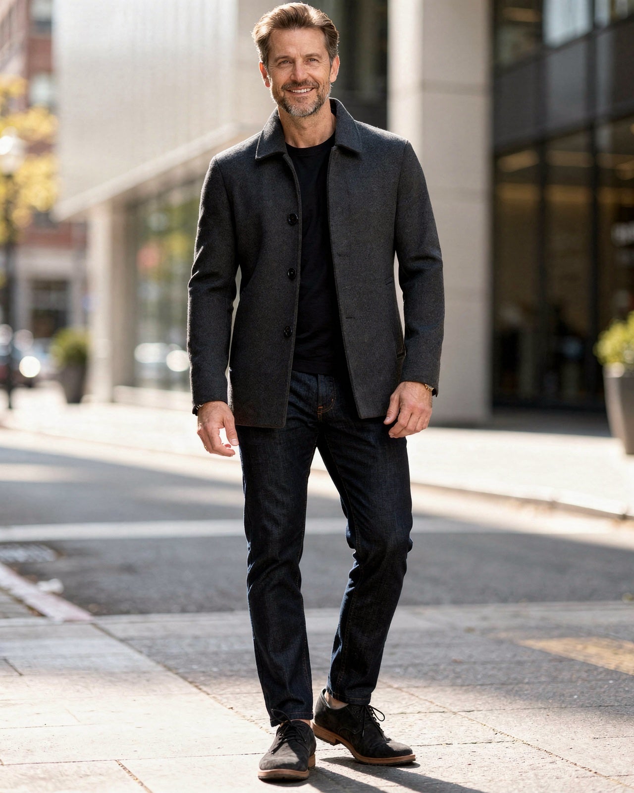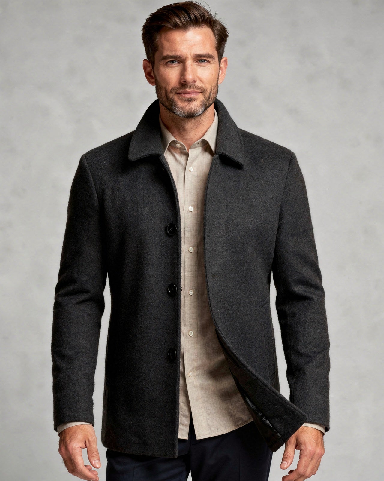 This men's button-up jacket is the perfect blend of style and functionality for autumn and winter. Designed with a structured collar and a button-up front, it offers a sharp silhouette while ensuring warmth and comfort with its smooth lining. Ideal for layering over shirts or knitwear, this jacket provides a sophisticated touch to your everyday wardrobe.