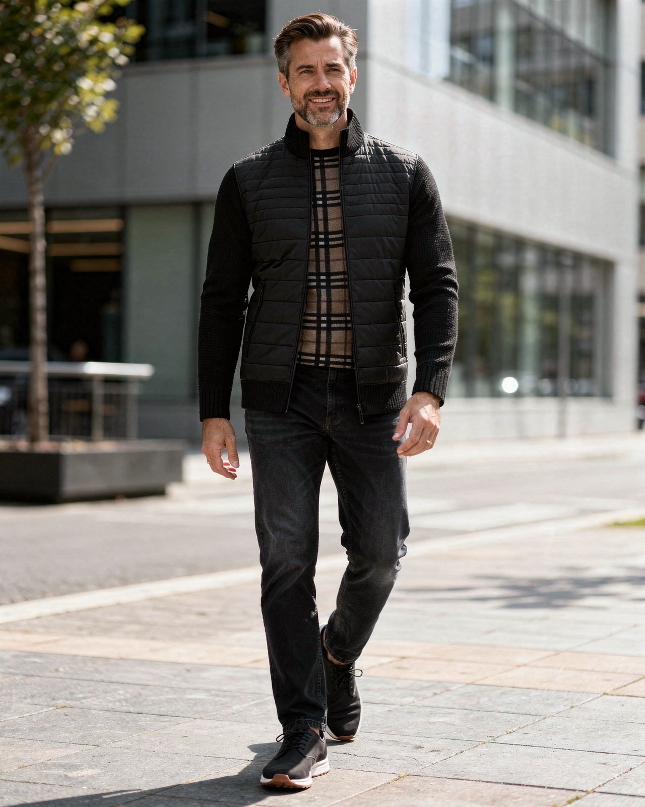 Men's Fleece Jacket | Hybrid Quilted Winter Layer, Casual