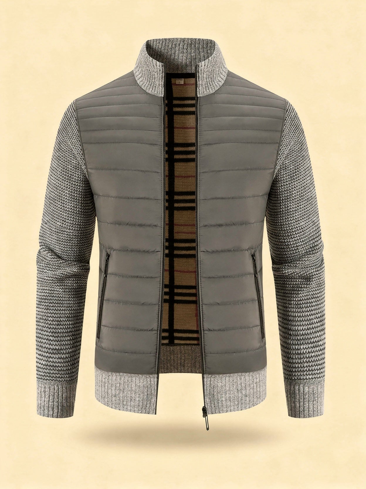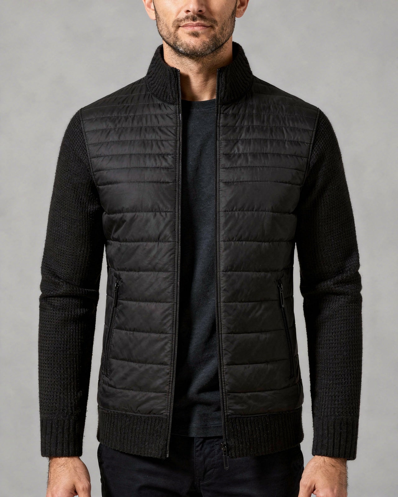 This hybrid fleece jacket combines the best elements of knitwear and outerwear, offering versatile warmth with a contemporary design. The quilted body ensures insulation against cold weather, while the knitted sleeves and trim provide flexibility and a refined texture. Ideal for layering during crisp autumn days or as a sleek winter essential.