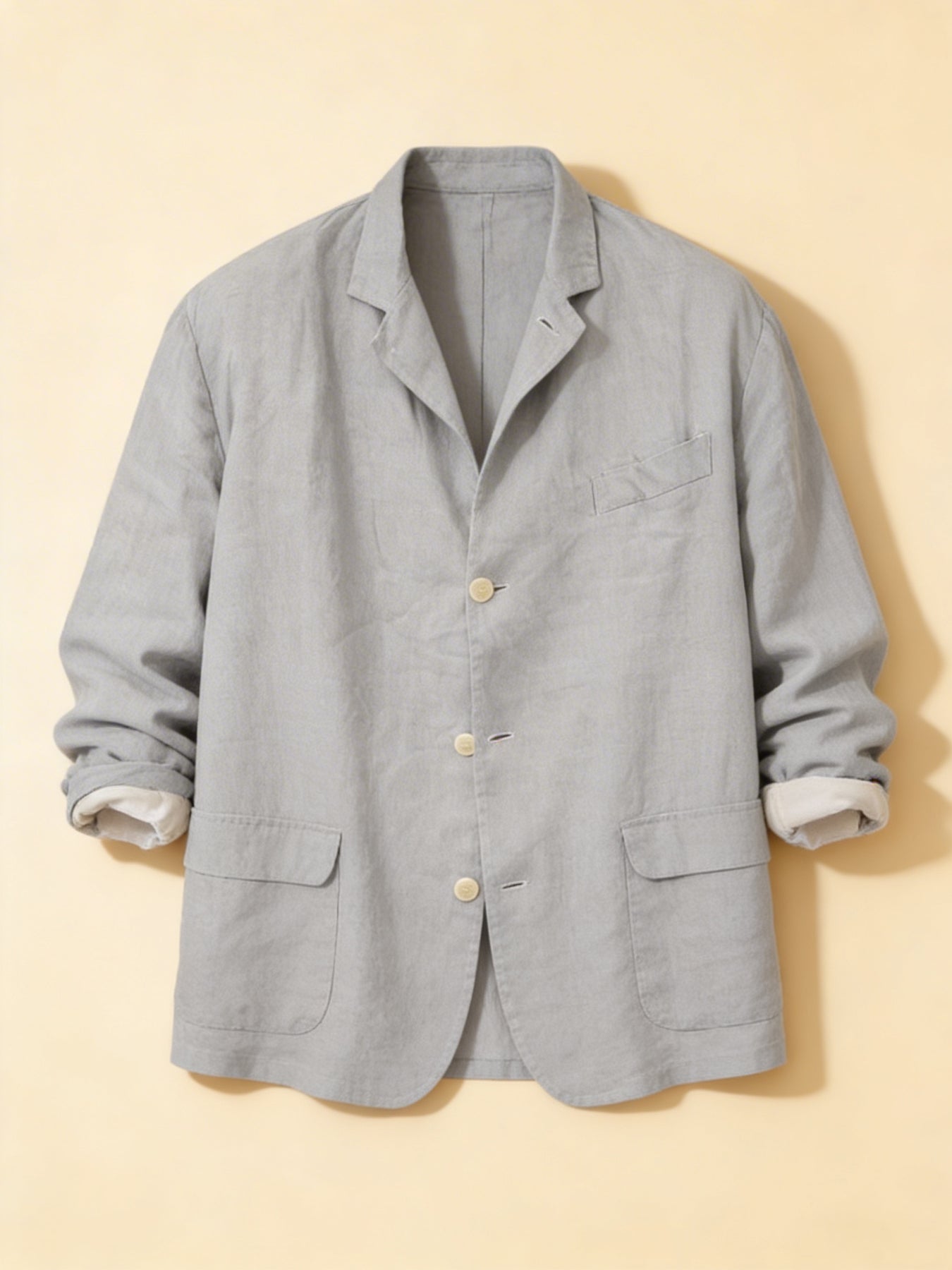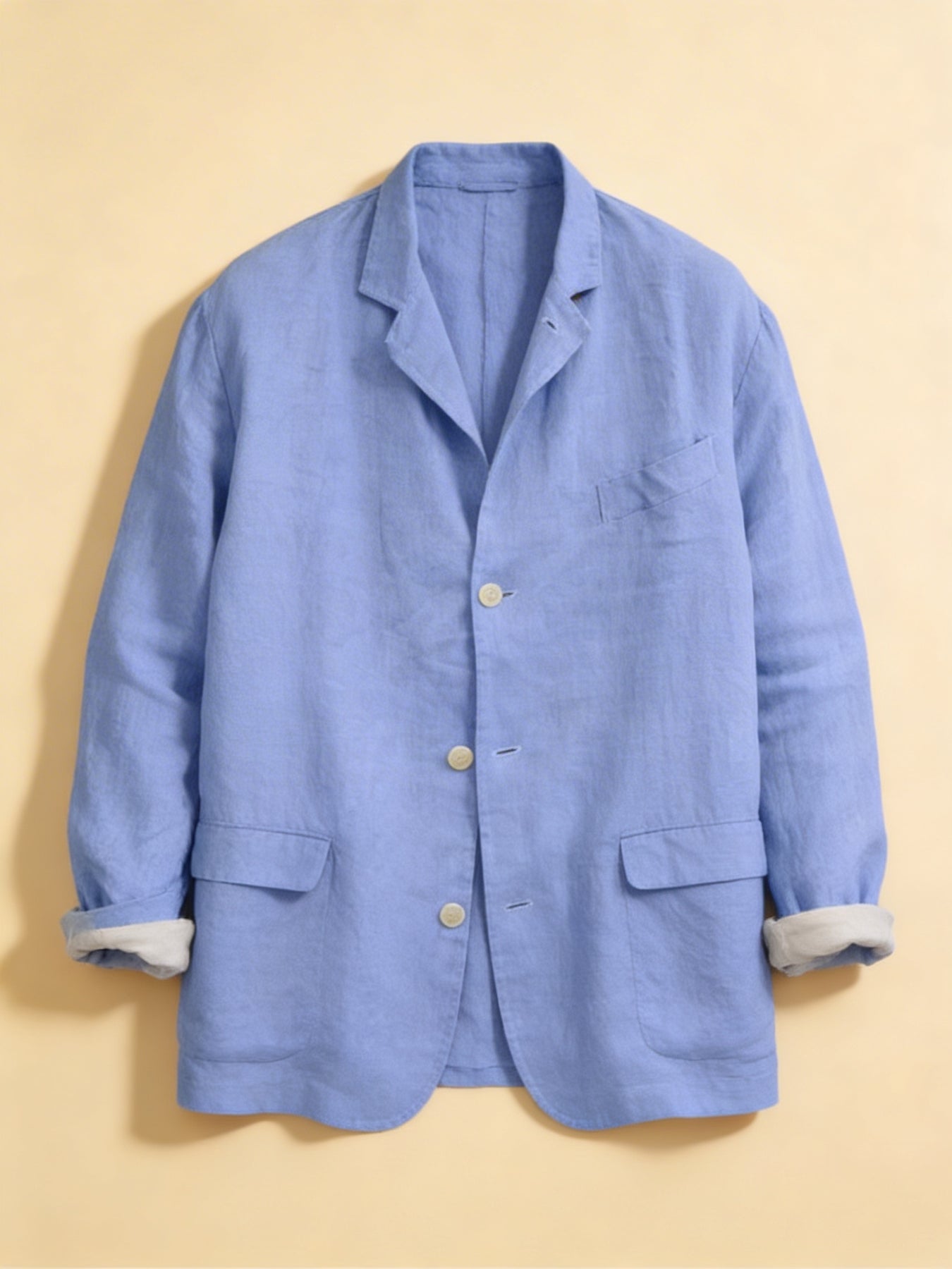 This men's linen blazer jacket delivers effortless Mediterranean-inspired style with a relaxed, breathable fit. Crafted from lightweight linen fabric, it drapes naturally for a laid-back yet polished look. With classic button-front closure, patch pocket, and a soft notch collar, this blazer is ideal for warm-weather layering — whether you're heading to a summer lunch, a beach wedding, or a casual Friday at the office.