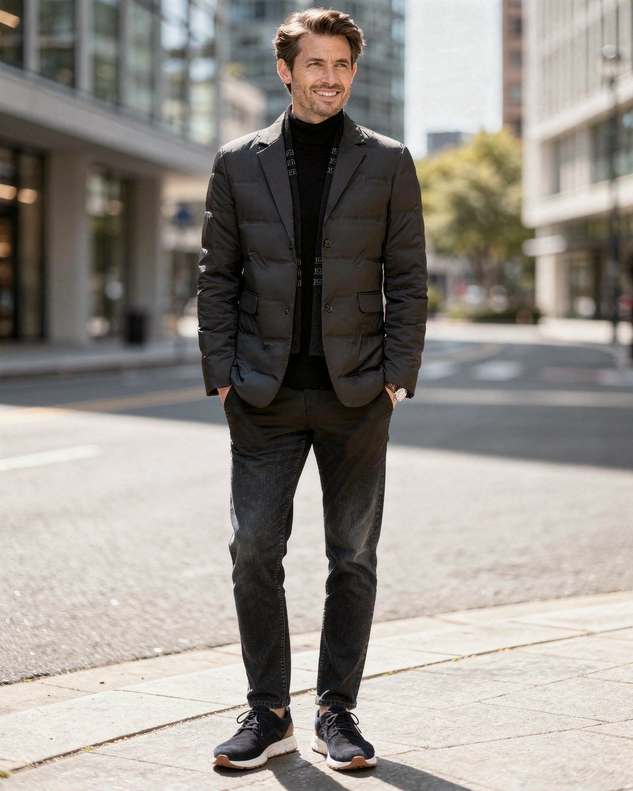 A sleek blend of tailored elegance and everyday warmth, this quilted blazer is designed for the man who values both refinement and practicality. The padded structure provides insulation without bulk, while the sharp lapel and structured cut maintain a polished look for smart casual occasions. Ideal for layering over knitwear or pairing with trousers, it transitions effortlessly from the office to evening outings, ensuring comfort and sophistication.