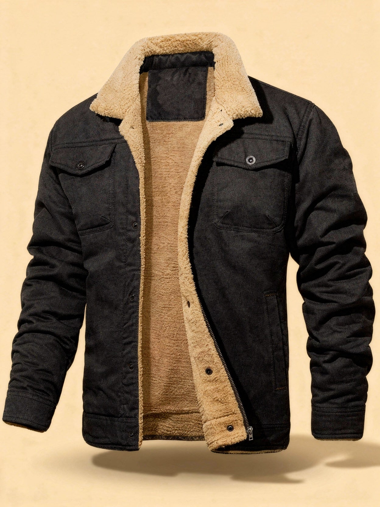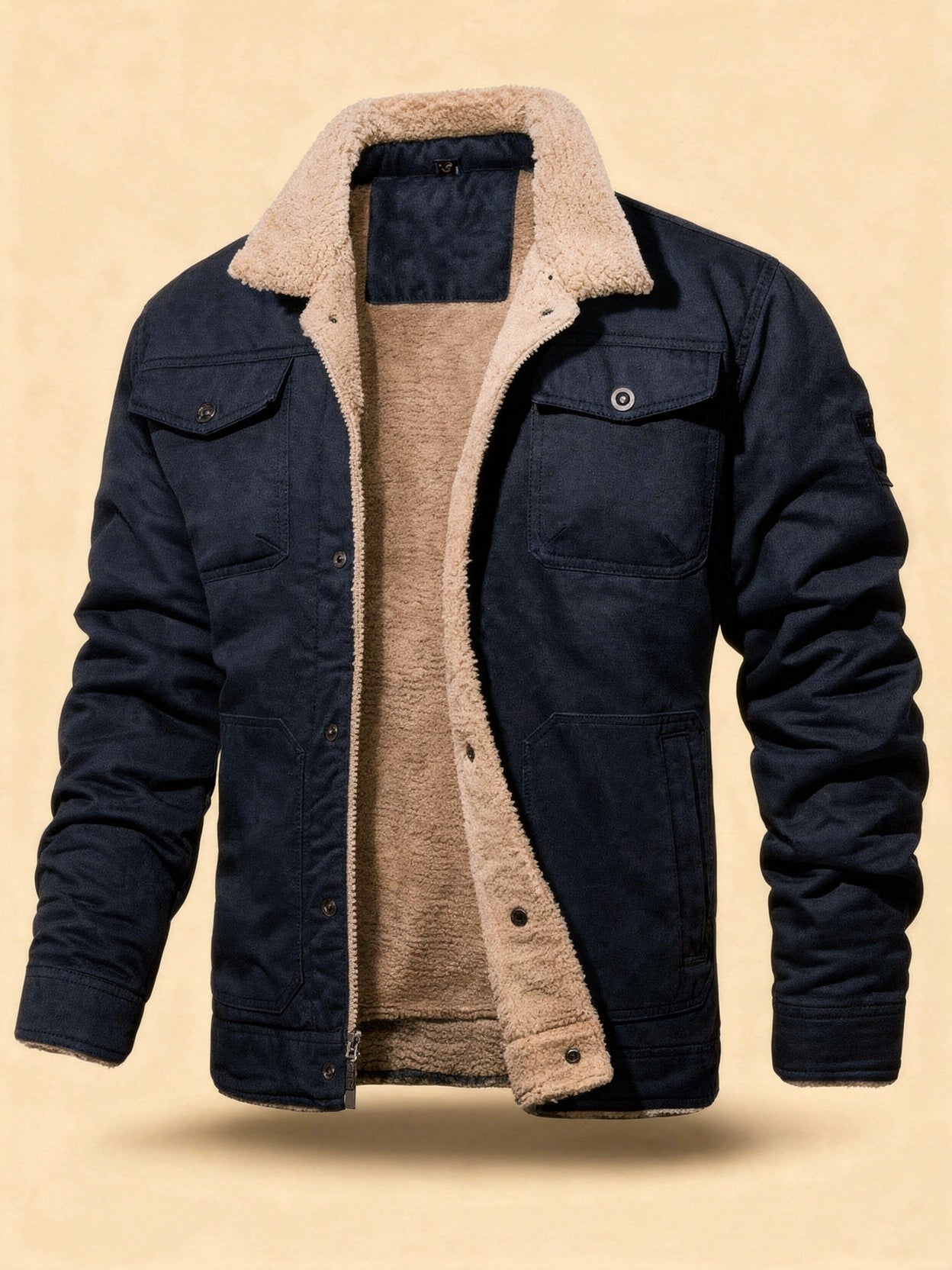 Design: Shearling-lined winter jacket with chest pockets